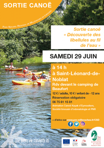 Sortie animée par le Canoé-Kayak d’Eymoutiers, la Société Limousine d’Odonatologie et le Parc Naturel Régional de Millevaches en Limousin.